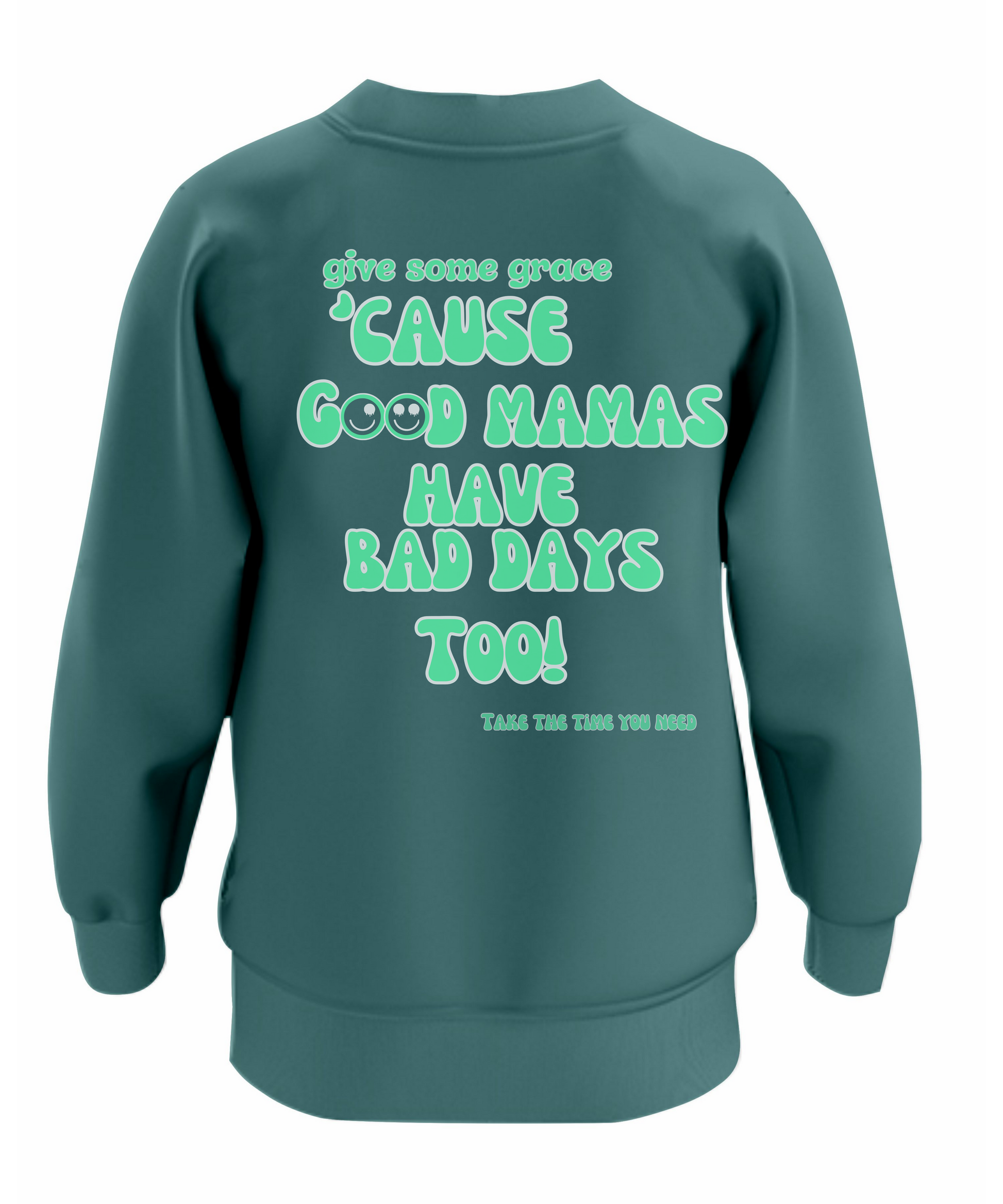 "Give a Mama Some Grace" Oversized Sweatshirt. We understand that even the best mamas can have tough days, and this sweatshirt is here to remind the world that every mom deserves a little extra grace and kindness.